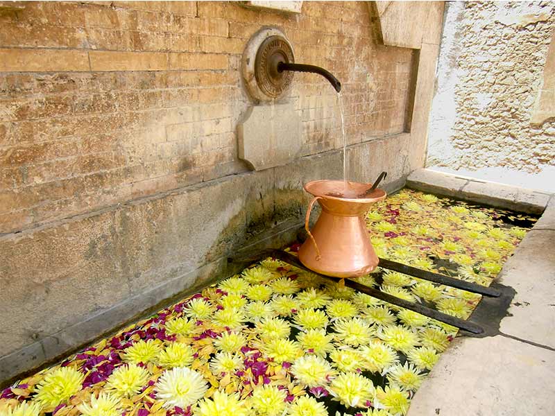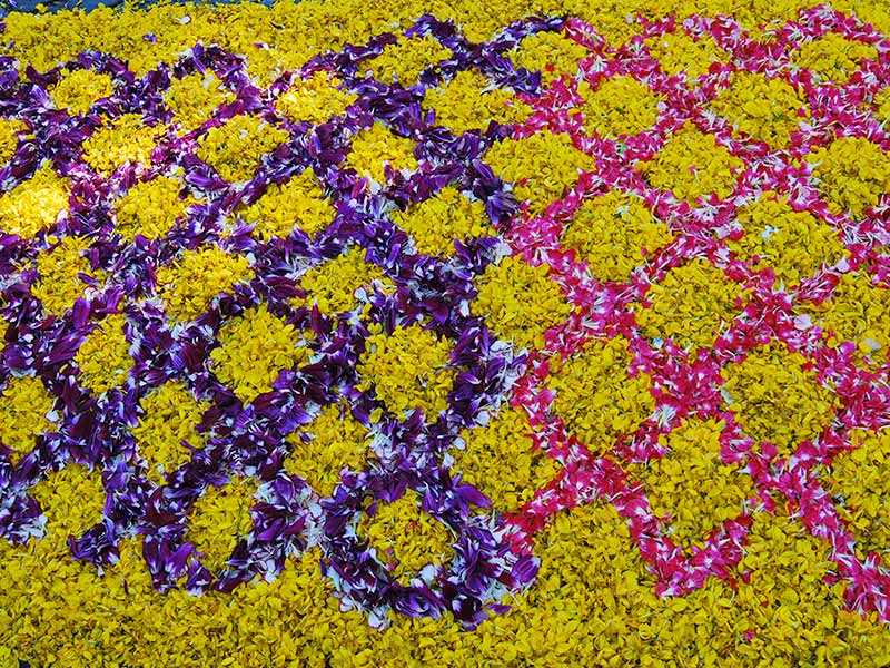 The week before the festival every group participates to collect its own flowers at the "spruia", to the color selection as well as the conservation of the petals in the cool tuff cellars. The placement of flowers is carried out voluntarily by twenty-two districts on Saturday night until the early hours of the morning, with great participation of the inhabitants of Genazzano. The embellished carpet assumes its colourful appearance with sacred themes, special events and topical subjects that arouse more attention, giving a very special charm to the streets of the historic centre, starting from the courtyard of the Colonna Castle until the square of the Republic.