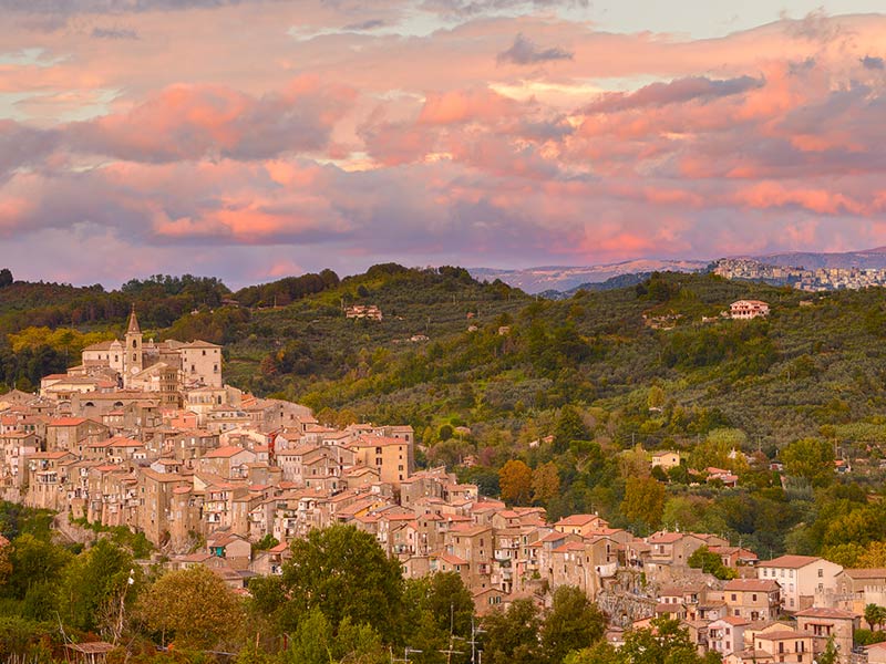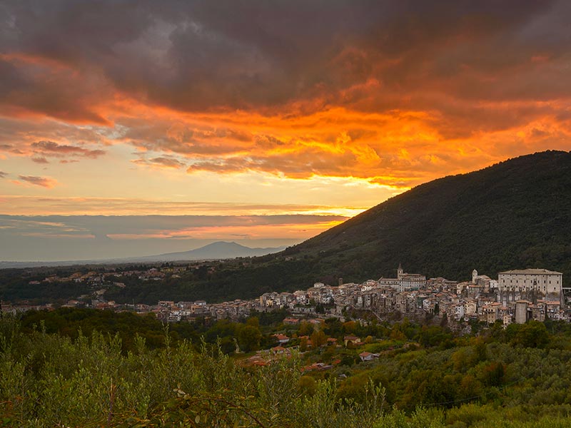 Genazzano is characterized by the beauty of the hamlet and the majestic medieval Colonna Castle that surmounts the hamlet. It is located about 45 km from Rome, at an altitude of 375 meters above sea level and has about 6,000 inhabitants. It was inhabited since ancient times thanks to its proximity to the capital and the pleasantness of the area located between the Prenestini Mountains, olive groves, vineyards and chestnut trees. It was home to imperial and aristocratic luxurious villas. An abundant array of archaeological finds has in fact been found throughout the centuries in various parts of the town and later re-used, as was custom at the time, by the Colonna Lords or transferred, in more recent times, to Roman museums.