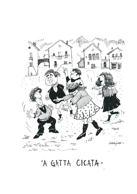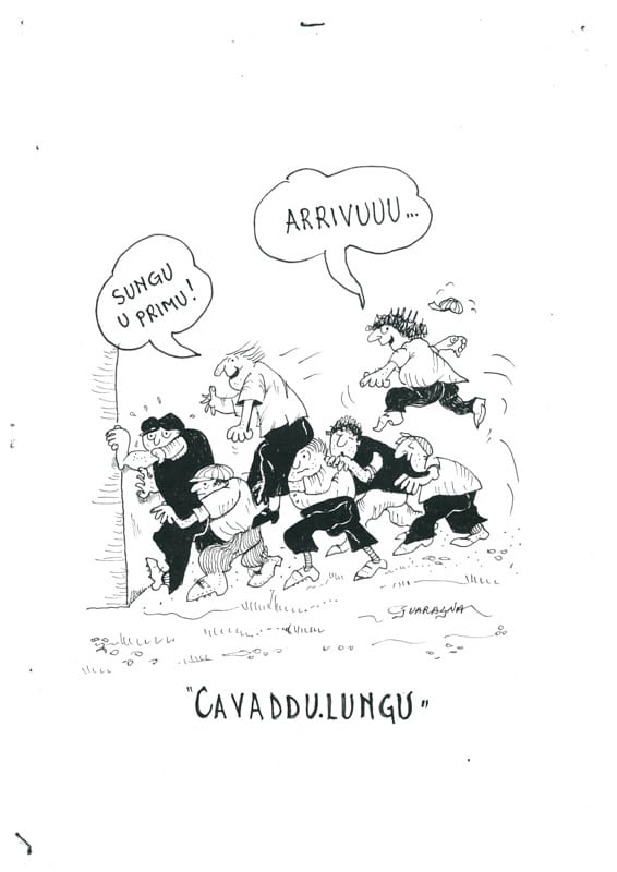 “U CAVADDULUNGU” Tipo di gioco: necessita di un luogo aperto con un muro per appoggiarsi. Giocatori: un minimo di 6 ragazzi, per formare due squadre da tre. Materiale occorrente: nessun materiale. Descrizione del gioco: tramite “u tuccu” (la sorte) i due capisquadra si giocano chi deve saltare e chi si deve mettere sotto per formare un cavallo. Il primo giocatore della squadra che ha perso alla sorte, si appoggia al muro, seguito dal secondo che si appoggia con le mani sulle spalle, seguito dal terzo e così via. La squadra vincente alla sorte, inizia a far saltare il primo giocatore, cercando di saltare più lungo possibile, segue il secondo e cosi via fino all’ultimo. Regole: vince chi riesce a far cadere prima l’avversario. A fine giro comincia a saltare l’altra squadra. Particolarità: è un gioco un po’ pericoloso perché bisogna reggere l’avversario sulle spalle perciò richiede anche resistenza fisica.