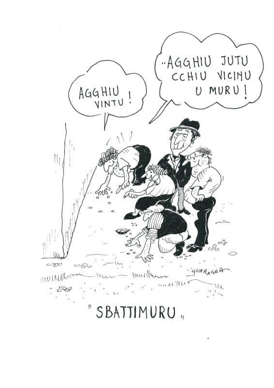 “SBATTIMURA” Tipo di gioco: un muro e una stecchetta di legno per fare da misura. Giocatori: almeno 4/5 giocatori. Materiale: monete da 10 lire, da 20 lire, da 50 lire, da 100 lire. Ovviamente, le monete si possono sostituire con altre oggi in corso. Descrizione del gioco: tramite la sorte si stabilisce chi deve tirare per primo. A giro, ognuno tira la moneta contro il muro. Chi la fa andare più vicino a un’altra moneta, verificata dalla misura di legno stabilita prima, vince la posta stabilita a priore e paga il proprietario della moneta.