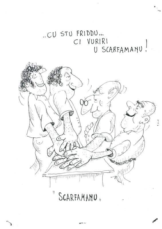 “SCARFAMANI” Tipo di gioco: un gruppo di ragazzi. Giocatori: non precisati, anche due. Materiale: nessuno. Descrizione del gioco: tramite la sorte si stabilisce chi deve mettere le mani distese, con il palmo in giù. L’altro, tramite un piccolo solletico sotto il palmo della mano, deve colpire la mano sul dorso. Il giocatore con le mani tese, si deve difendere tirando via la mano. Un gioco di abilità e di riflessi. Se il colpo va a vuoto si invertono i ruoli. Particolarità: stimola i riflessi.