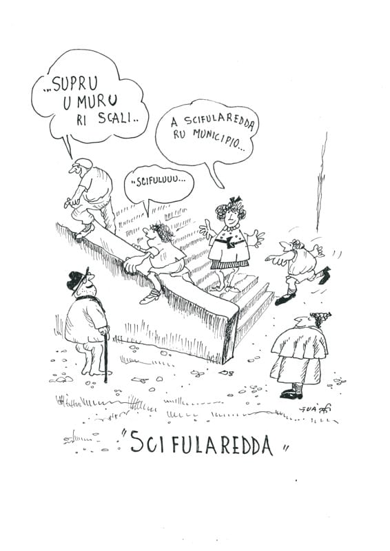 “SCIFULAREDDA” Tipo di gioco: un muro liscio di una lunga scala. Giocatori: diversi. Materiale: nessuno in particolare. Descrizione del gioco: ci si organizza dalla cima della scala. Ogni ragazzo si mette a cavalcione sul muro reso liscio dalle numerose volte percorso e si arriva giù.